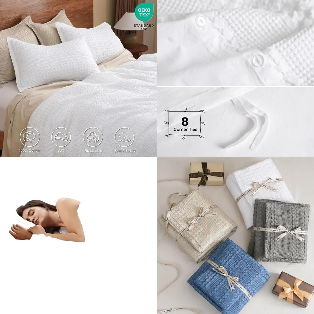 Queen Size Cotton Waffle Duvet Cover Set, Soft Breathable Bedding for All Seasons, 3-Piece White Luxury Textured Design $113.99