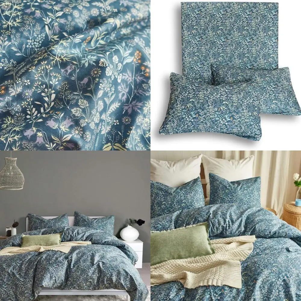 Floral Duvet Cover Queen Flower Pattern Blue Duvet Cover Set Garden Style Bedding Comforter Cover Set with Zipper Closure-Luxury $60.81