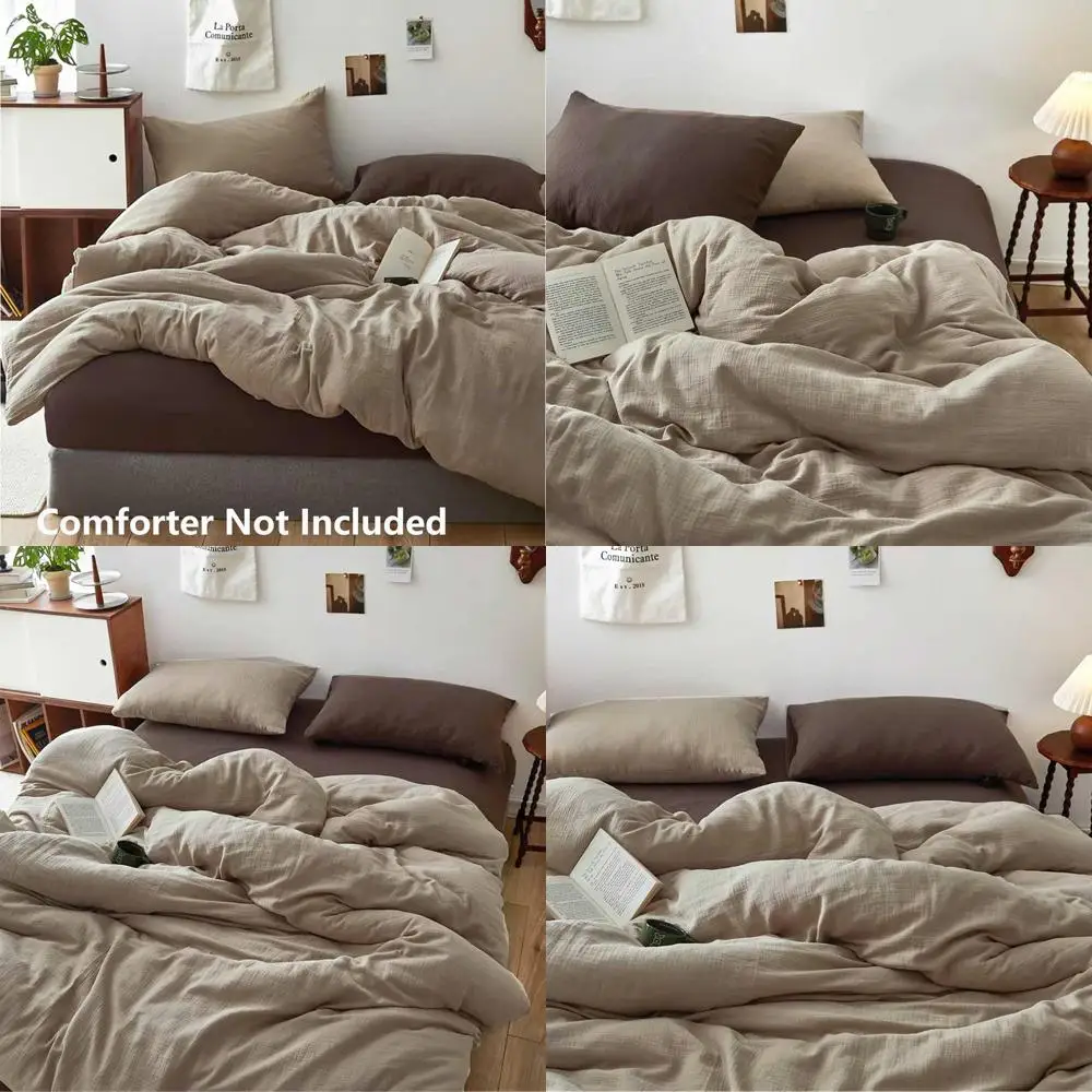 Queen Size Cotton Gauze Duvet Cover Set - Soft Linen-Like Bedding, Modern Farmhouse Style, 3 Pieces, 90x90, Brown Taupe $75.65