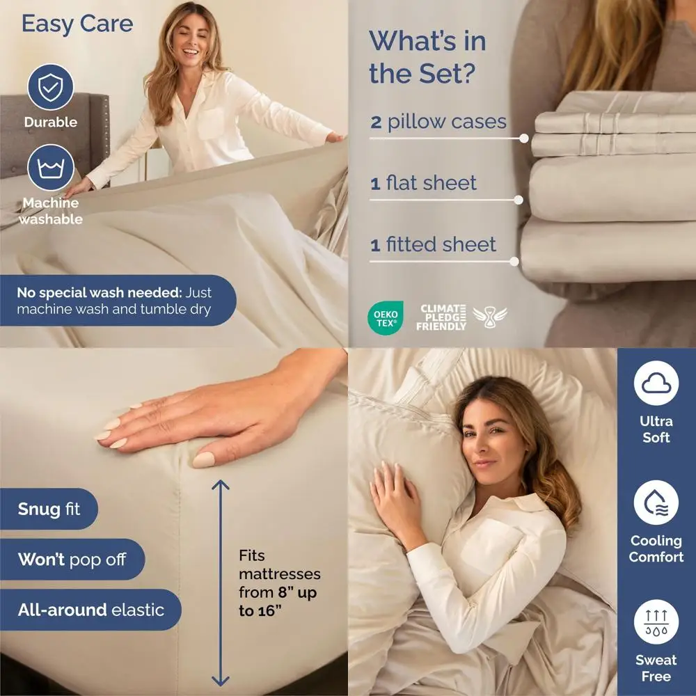Queen 4-Piece Bedding Set - Soft, Breathable Sheets for Comfortable Sleep - Suitable for All Ages - Oeko-Tex Certified Wheat $38.17