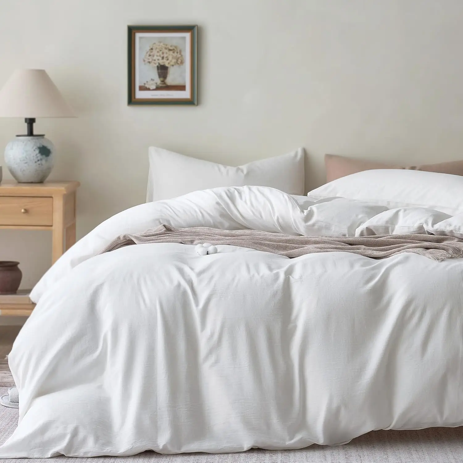Queen Size Washed Cotton Duvet Cover Set - Soft, Breathable Bedding with Zipper Closure in Off White $68.92