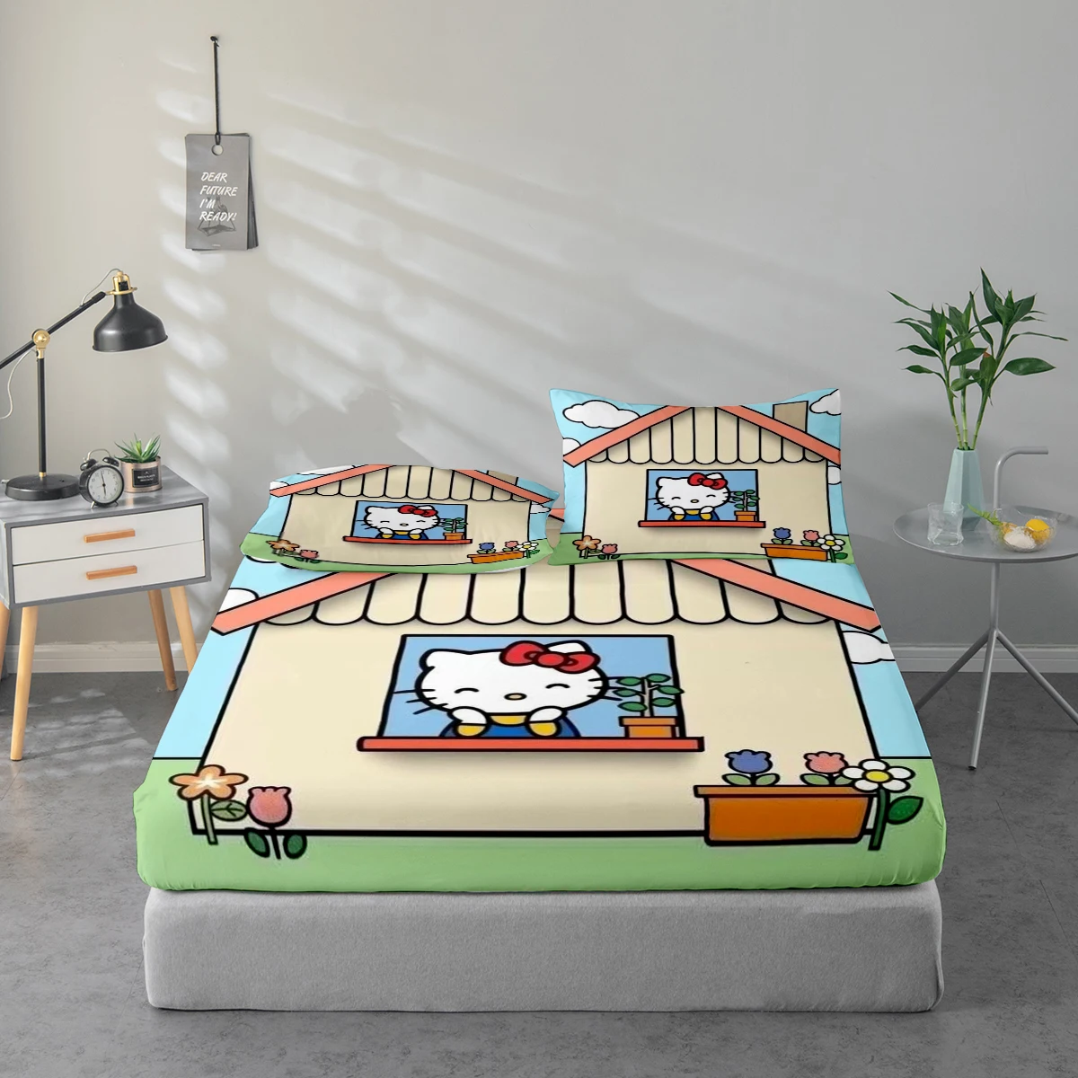 3-Piece High-Definition Digital Printed Bed Sheet Set, Hello Kitty Pattern Bed Sheet Set, Large Floral Print Bed Sheet Set, Includes 1 Fitted Sheet + 1/2 Pillowcase, Suitable for Bedroom, Guest Room, Home Decoration, Polyester Fiber Fitted Sheet + Pillowcase, Ultra-Soft Bedding, Thick and Ultra-Soft Fabric, Comfortable for All Seasons, Machine Washable $31.80
