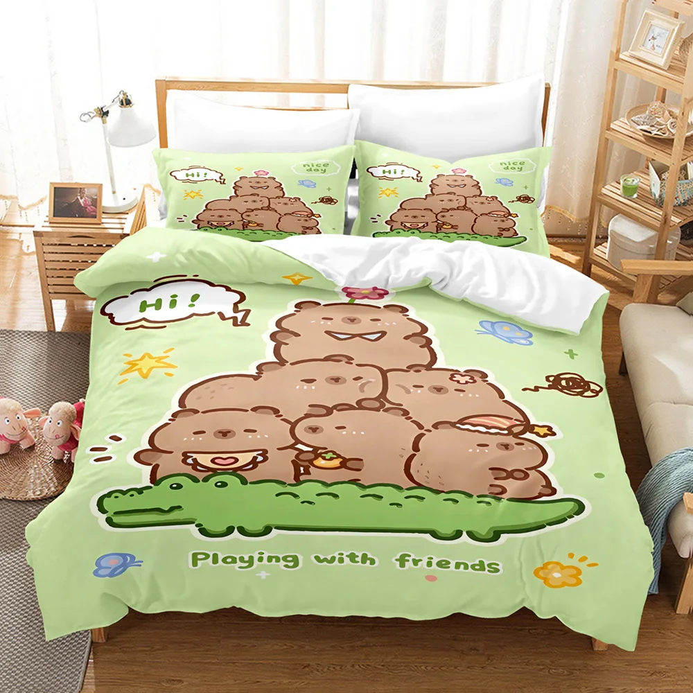 Capibara Bedding Set Luxury Anime Capybara King Size Quilt Cover Pillowcase Kids Bedroom Cute Bed Sack Pillowslip Children Gift $24.83