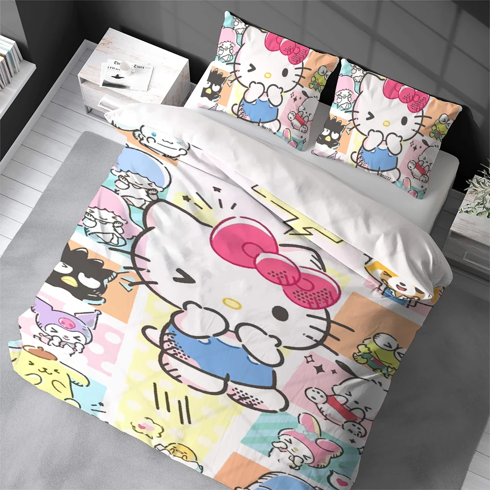 Hello K-Kitty Cute Duvet Cover Set Home Style Bedding Soft Laundry Cotton Bed 3 Piece Set Student Dormitory Gift $33.95