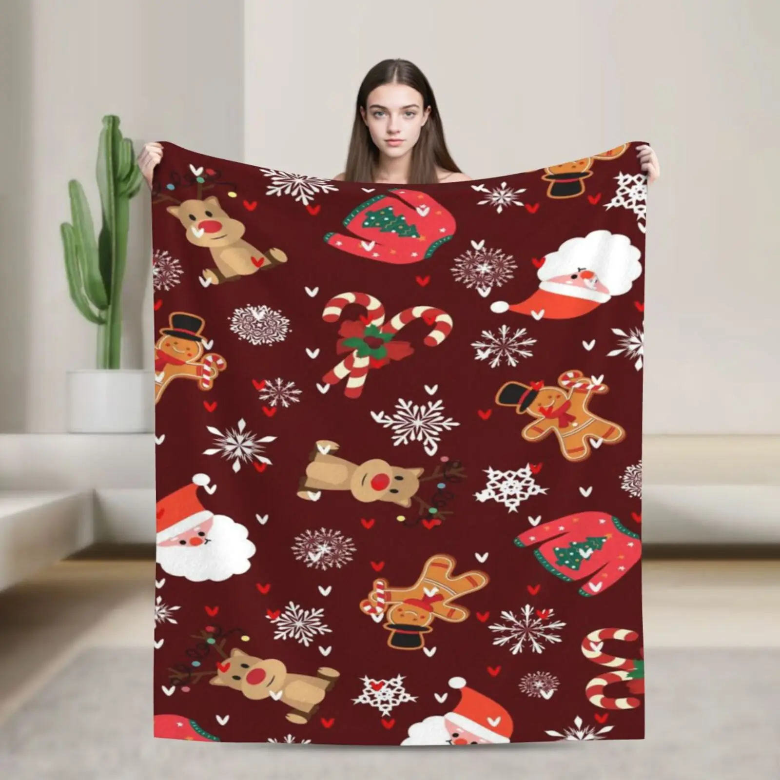 Cute Cartoon Christmas Blanket Fleece Spring Autumn Christmas Breathable Super Soft Throw Blanket for Bedding Office Rug Piece $18.90