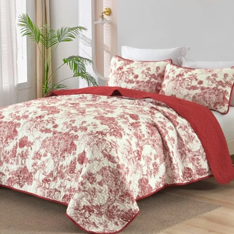 Botanical Quilt Set Size 3 Pieces Floral Plants Printed Bedspread Bedding Set Christmas Soft Lightweight Microfiber Coverlet Se $47.31