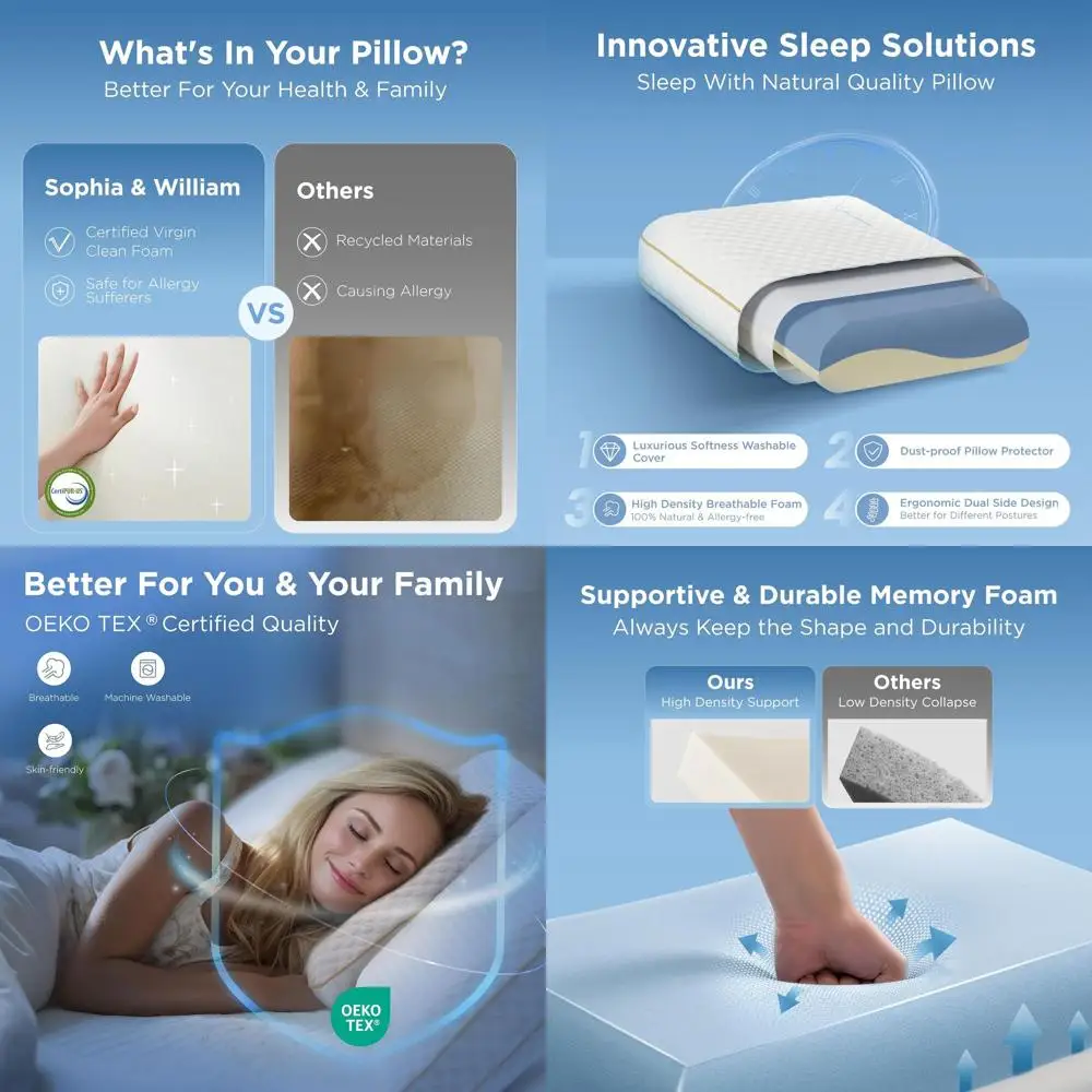 Dual-Density Memory Foam Pillow for Side, Back, and Stomach Sleepers - Enhanced Support and Longevity $63.24