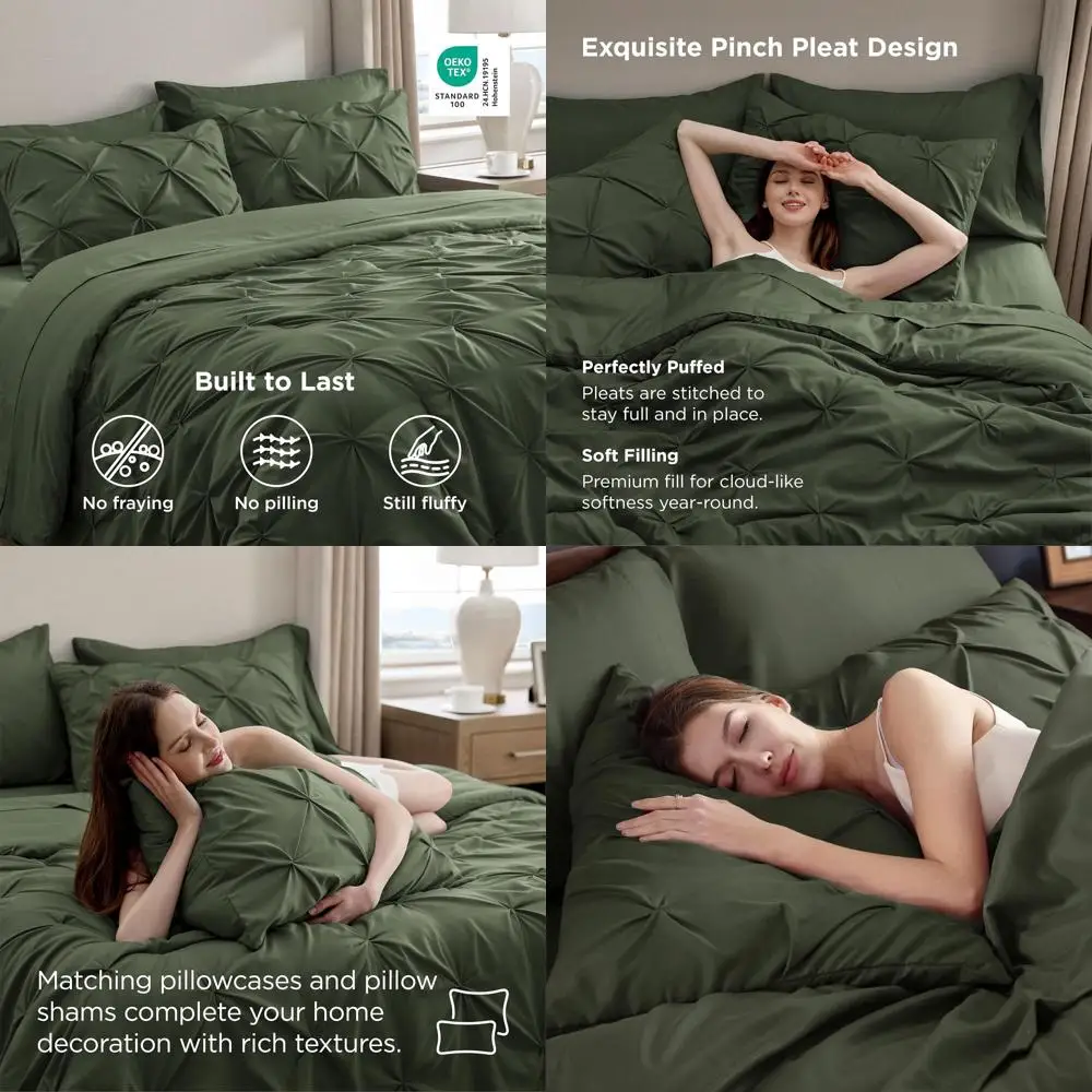 Olive Green Queen Size Comforter Set - 7-Piece Bedding with Pintuck Design, All-Season Comforter, Sheets, Pillowcases, and Shams $67.54