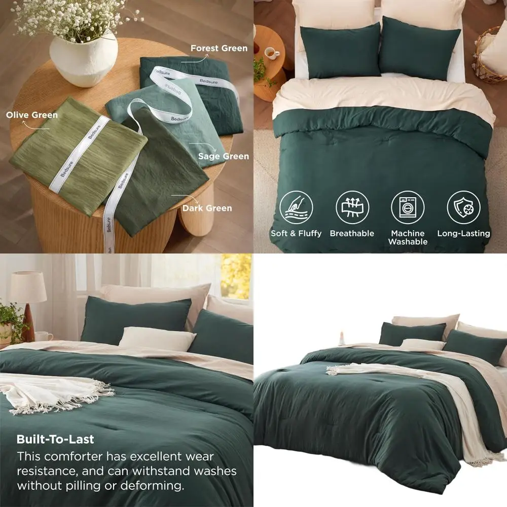 Forest Green Prewashed Comforter Set, 3-Piece Soft Bedding for All Seasons, 104x96 Comforter and 2 Pillowcases $69.68