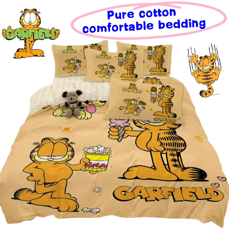 New Garfield Pooky Bedding Four-piece Set Cartoon Cute Cotton Comfortable Student Dormitory Bed Sheet Quilt Cover 3-piece Set $51.86