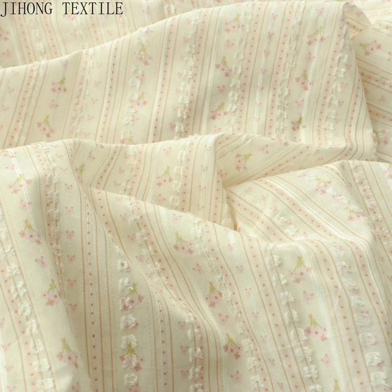 Elegant Pink Flower Bouquet Fabric Vertical Stripe Print 100% Cotton Cloth Soft Dress,Curtains,Bedding for DIY Sewing Materials $7.17