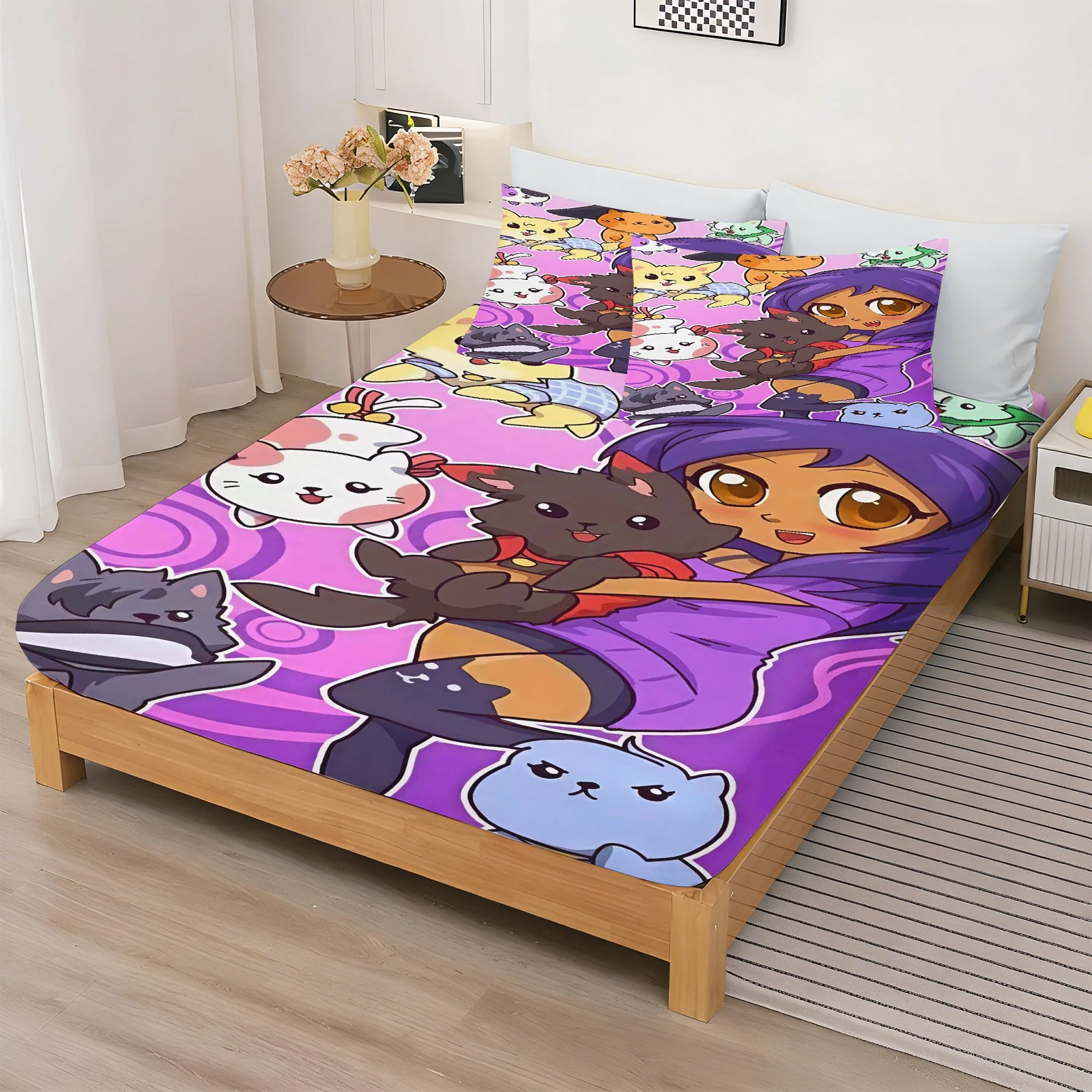 Fitted Sheet Children Kawaii Cartoon Aphmau Coverage Baby Teenager Sheets Cover Elastic Bedding Cute Digital Printing $6.81