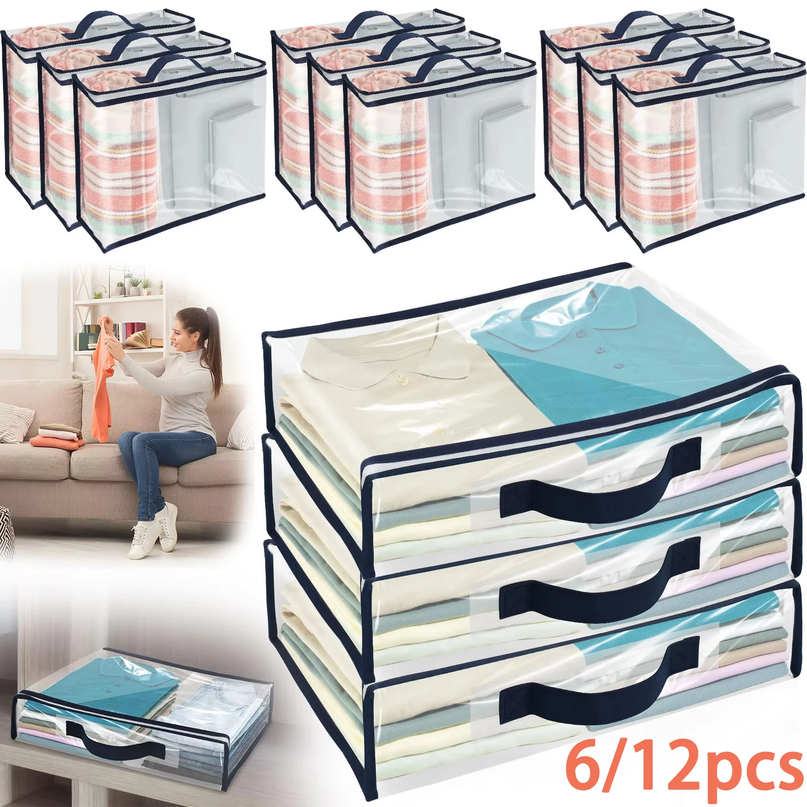 6/12Pcs Bed Sheet Storage Bags PVC Waterproof Clothes Blankets Packing Box Waterproof Dustproof Clear Zippered Pillow Bedding $15.29