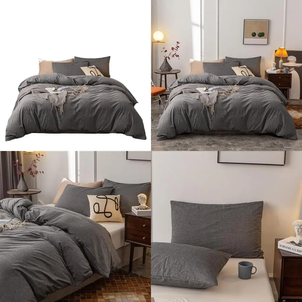 100% Linen Duvet Cover Set 3pcs King Size Natural Washed Flax Solid Color Breathable Bedding with Button Closure $167.72