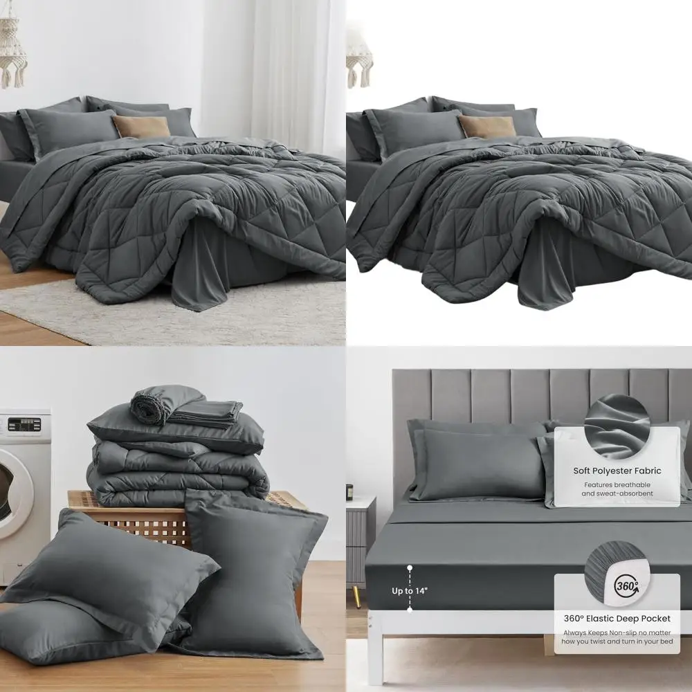 7-Piece Dark Grey King Comforter Set: All-Season Bedding with 1 Comforter, 1 Flat Sheet, 1 Fitted Sheet, 2 Pillowcases & 2 Shams $58.95