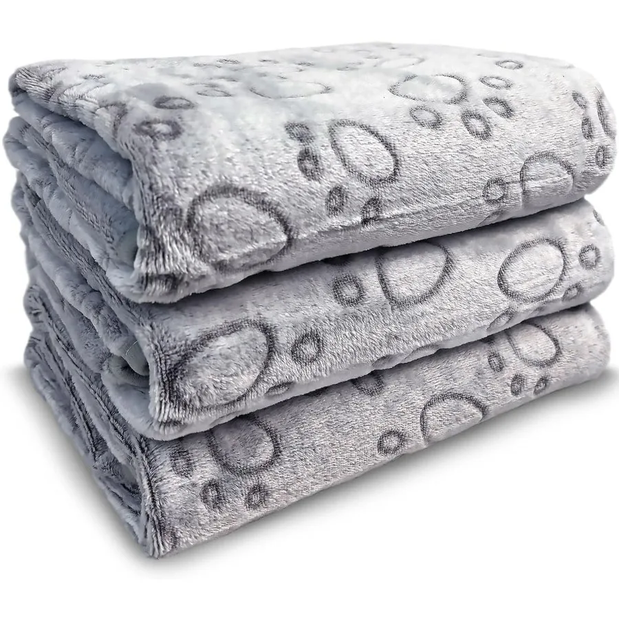 1 Pack of 3 Flannel Dog Blankets Washable Soft and Fluffy Pet Blanket With Cute Paw Print 41 x 31 Gray Ideal for Cozy Bedding T $35.83