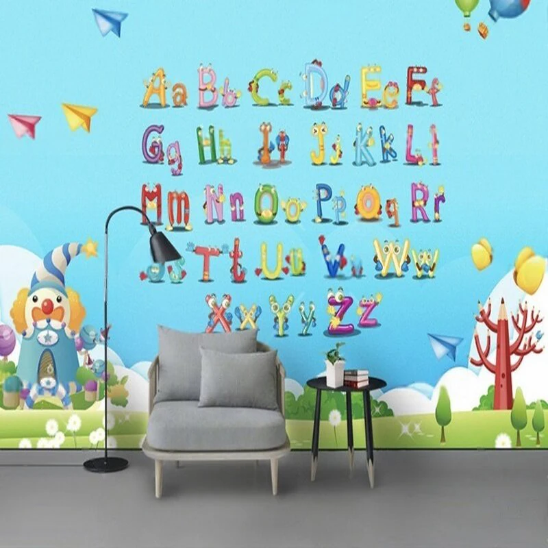 Cartoon English letter wall stickers for children's room kindergarten classroom TV luxurious home decoration bedroom background $7.49