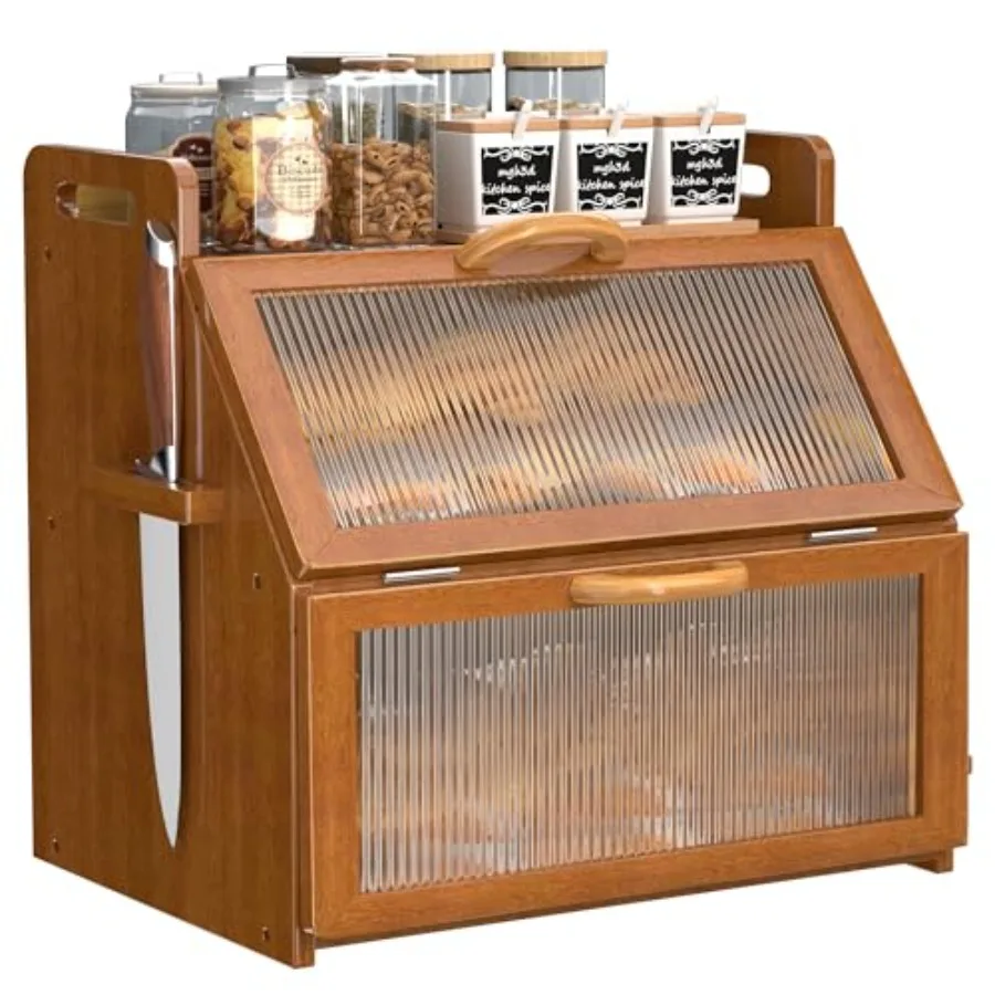 Bread Box for Kitchen Countertop Large Bread Storage Container for Homemade Bread Wooden Farmhouse Breadbox Organizers Double L $62.09