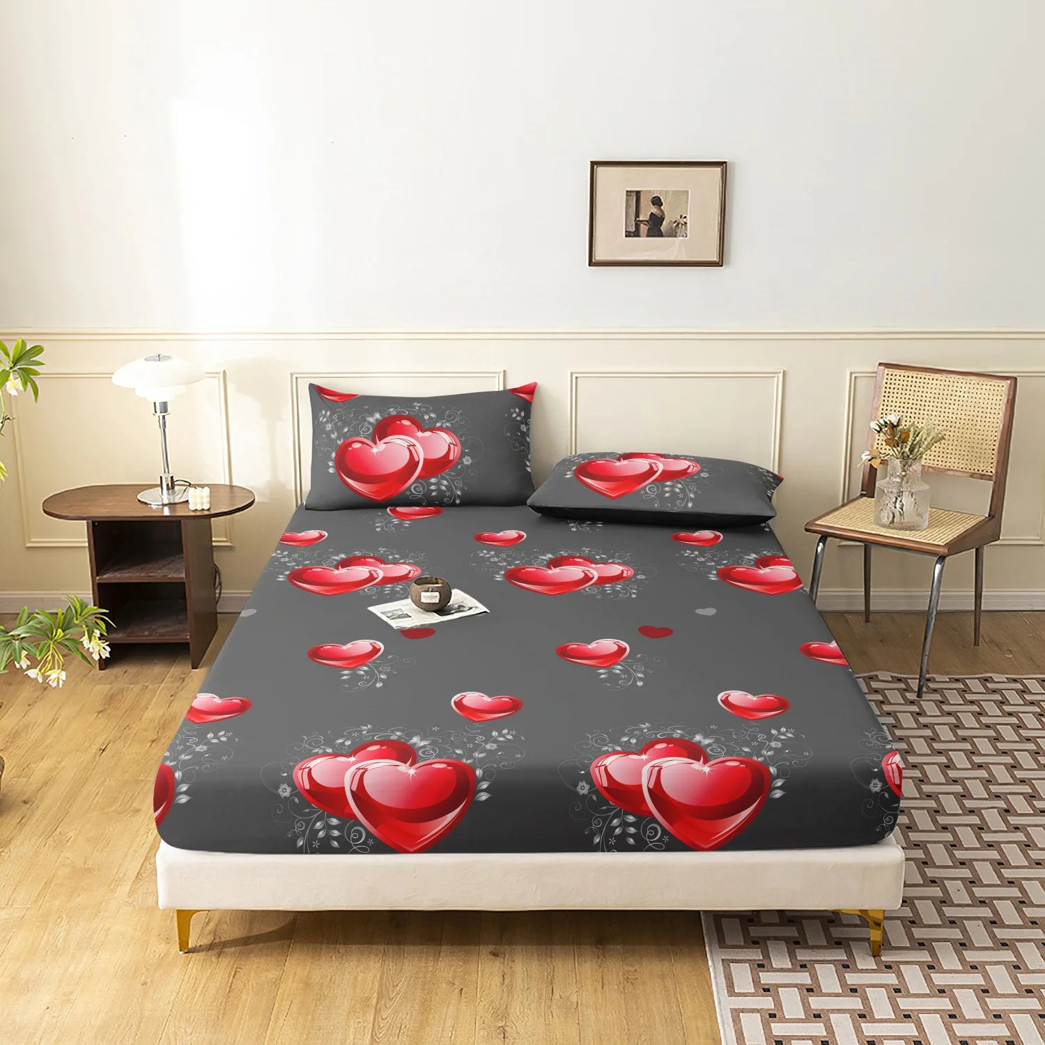 3pcs Fitted Sheet Set,Romantic Valentine'S Day Peach Heart Print Bedding, Love Printed Fashion Classic Soft And Comfortable $12.00