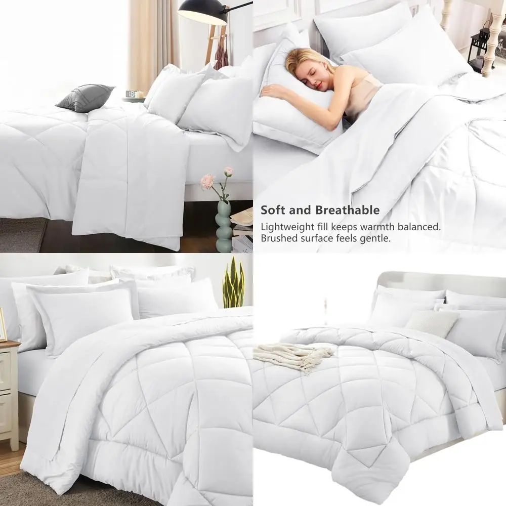 Luxurious 7-Piece White King Comforter Set with Bedding, Sheets, Pillowcases & Shams for All Seasons $82.00