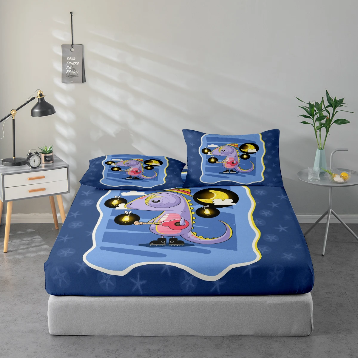 Cartoon Dinosaur Print Pattern Bed Sheet Set, Mattress Protector and Pillowcase Combination, High-Definition Printed Bed Sheet Set Includes 1 Bed Sheet + 1 or 2 Pillowcases (60*100cm and 72*132cm Are 1 Pillowcase, the Rest of the Sizes Are 2 Pillowcases), Suitable for Bedroom and Guest Room, Ultra-Soft Polyester Bedding, Machine Washable, Can Be Used in All Seasons $22.95