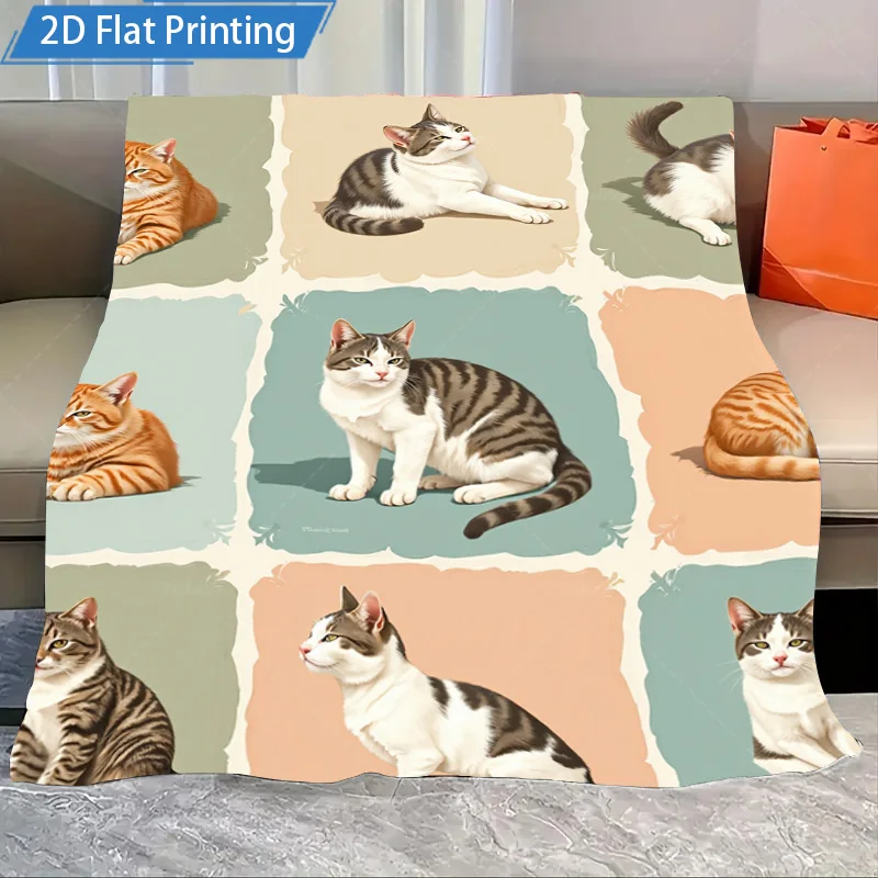 1pc Flannel Blanket Cute Cat Print Fleece Blanket Soft Cozy Bedding for Pet Lovers Home Decor Gift Idea $15.63