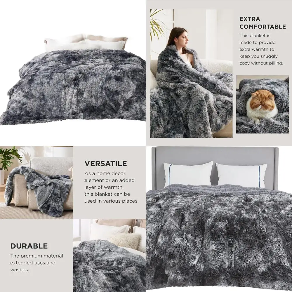 King Size Plush Faux Fur Sherpa Blanket, Tie Dye Grey, 108x90 Inches, Cozy Oversized Winter Bedding $81.39