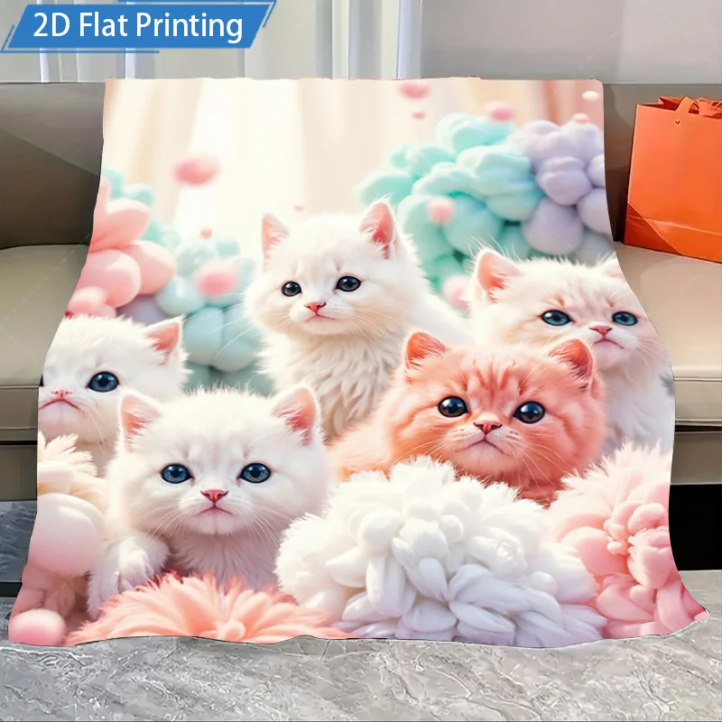 1pc Flannel Blanket Cute Kitten Floral Print Blanket Soft Cozy Bedding for Kids and Cat Lovers 2D Flat Printing Design $15.38