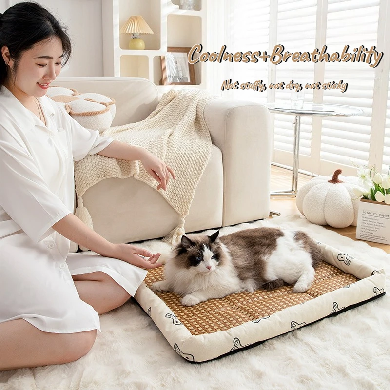 Summer Cooling Mat for Small Dogs Cats Breathable Pet Bed Pad Washable Anti Slip Dog Cat Bedding Portable Floor Cushion $9.98