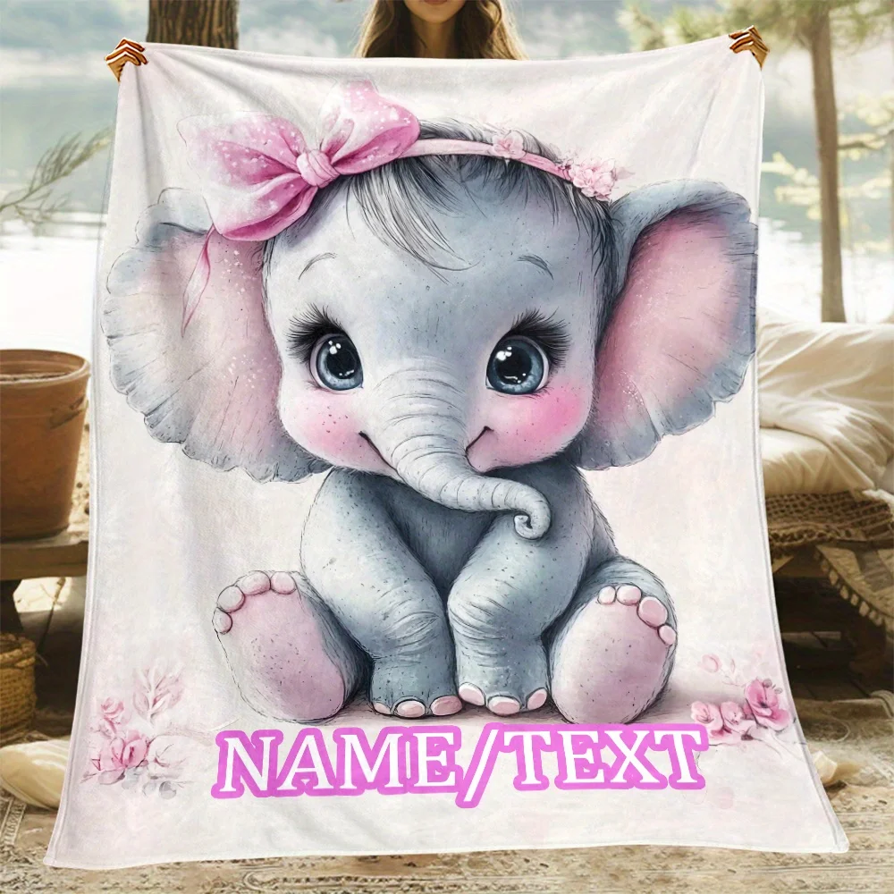 customizable pink elephant velvet blanket - personalized text, soft and warm flannel sofa blanket, bedding, travel, office, sofa $13.05