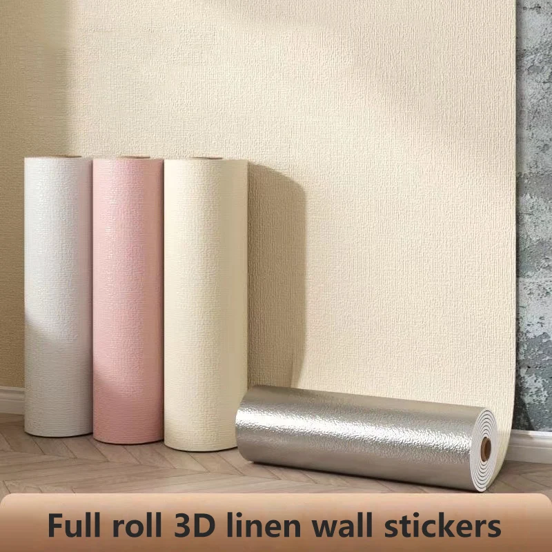 50cmx10m/2.8m Self-adhesive Wallpaper Linen Plain Diatom Mud Waterproof Removable Wall stickers Bedroom Living Room Wall Decor $9.39