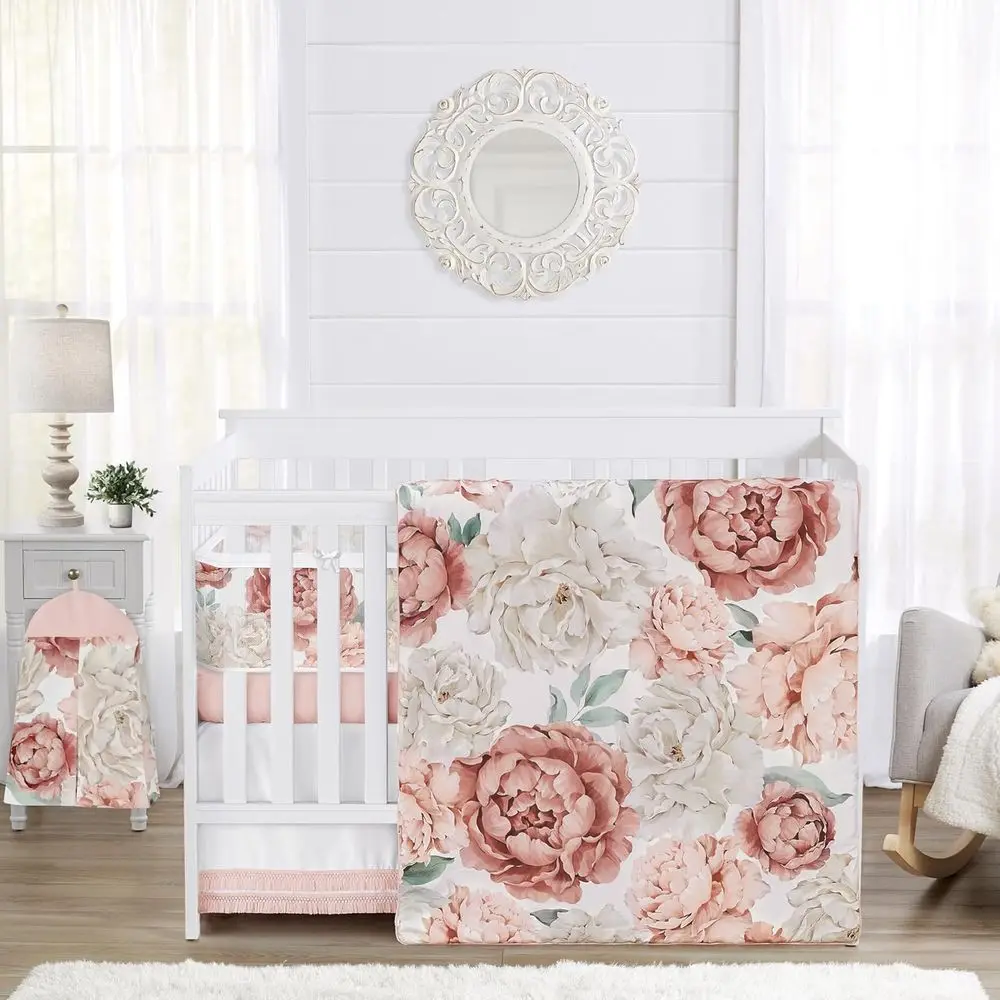 Blush Pink Boho Shabby Chic loral Girl Baby Crib Bedding Set Inant Nursery Room BreathableBaby Breathable Mesh Crib Liner Blanke $159.10