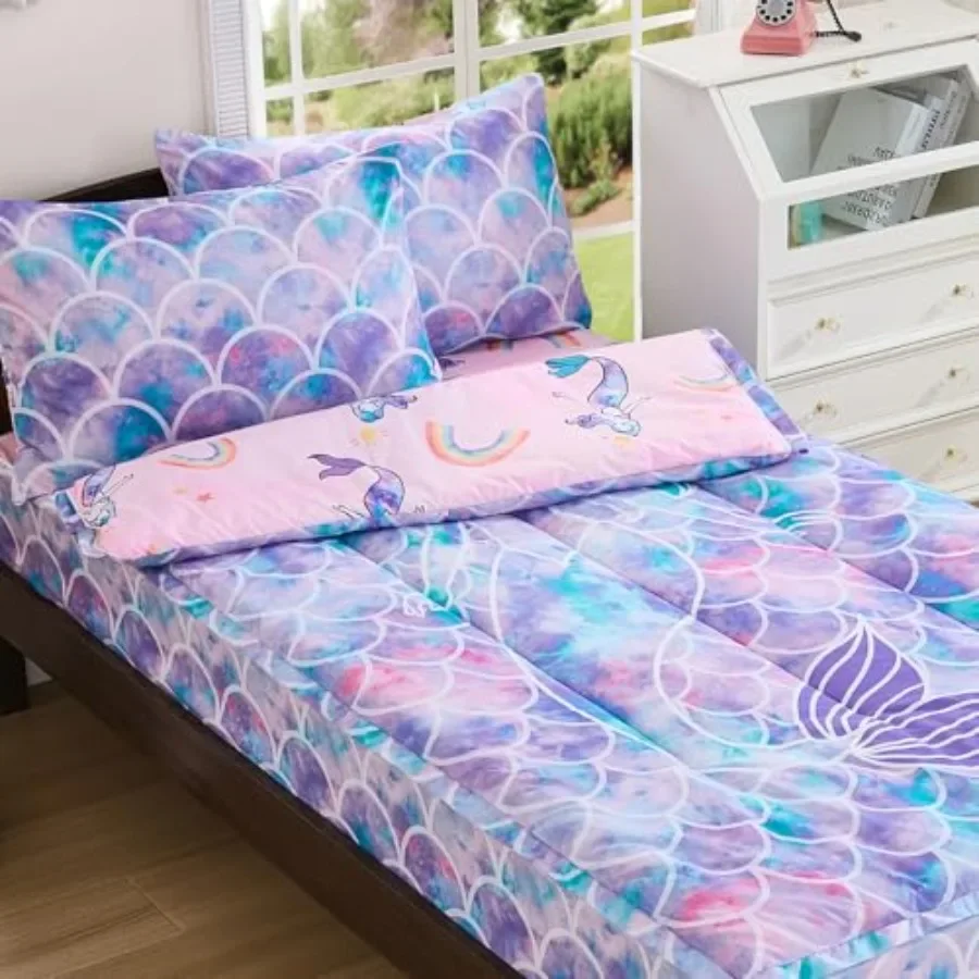 Blue Rose Print 9-Piece Bedding Set: Microfiber Bedspread, 2 Printed Curtains, 4 Solid Curtains & 2 Pillowcases Home Decor Set $80.20