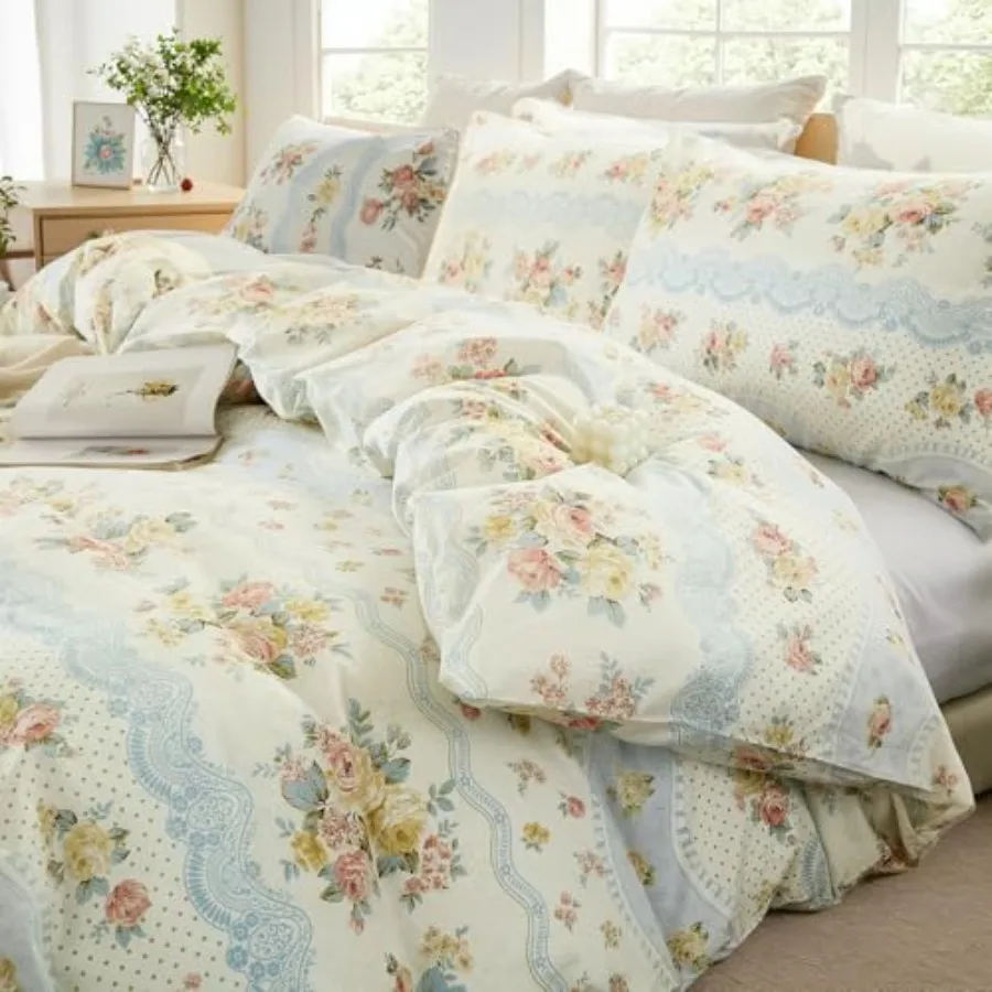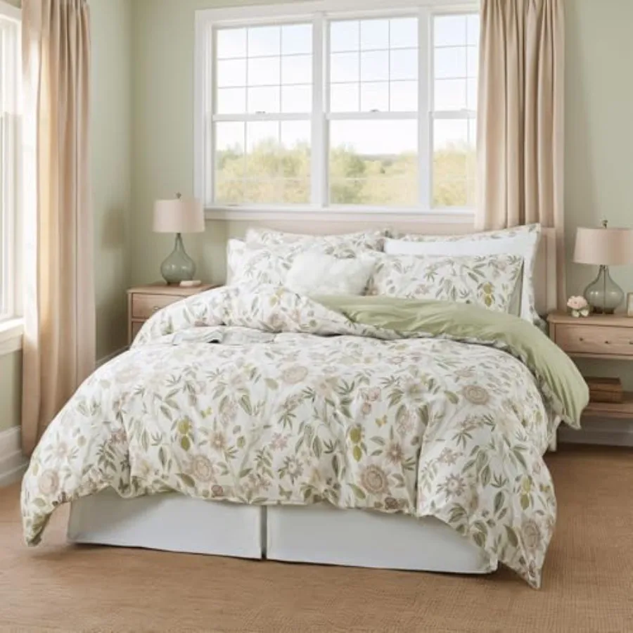 100% Cotton Duvet Cover Set Reversible Bedding Ultra Soft Breathable Natural Cotton 3 Pieces French Cottagecore Style Comforter $79.07