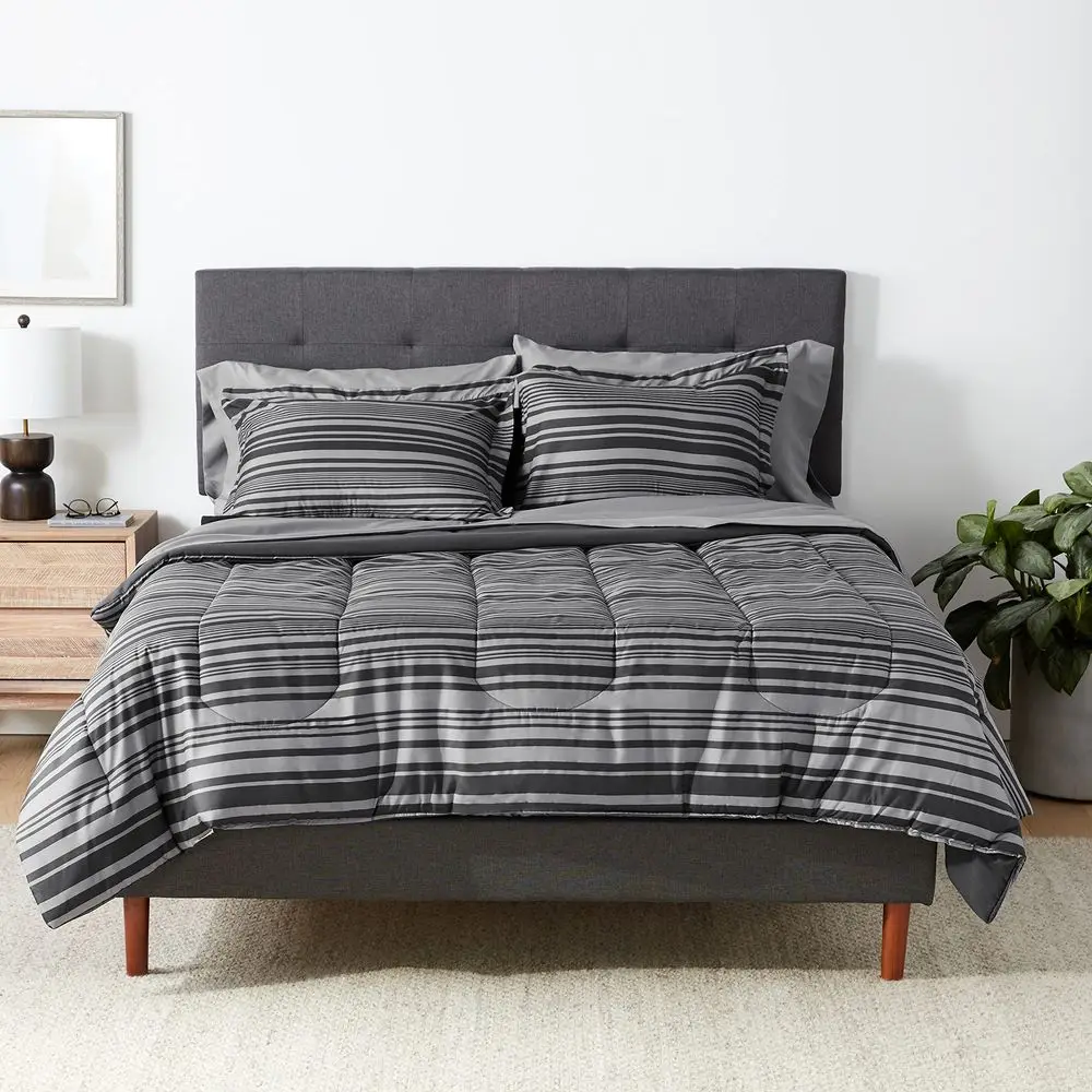 Full Queen Comforter Set with Sheets, 7Piece Gray Calvin Stripe Bedding, Lightweight Microfiber BedinaBag, Striped $24.87