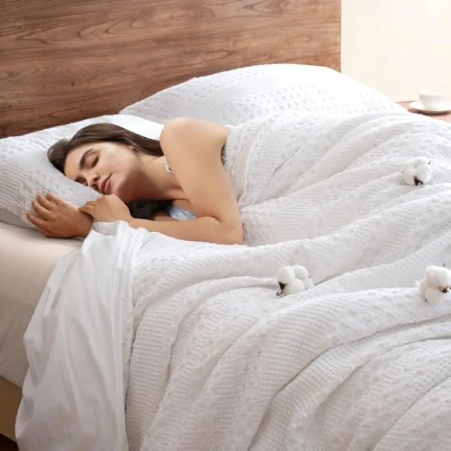 100% Cotton Waffle Duvet Cover Size Soft Breathable Cotton Bedding Duvet Cover Set for All Season Weave Luxury Textured Design $77.64