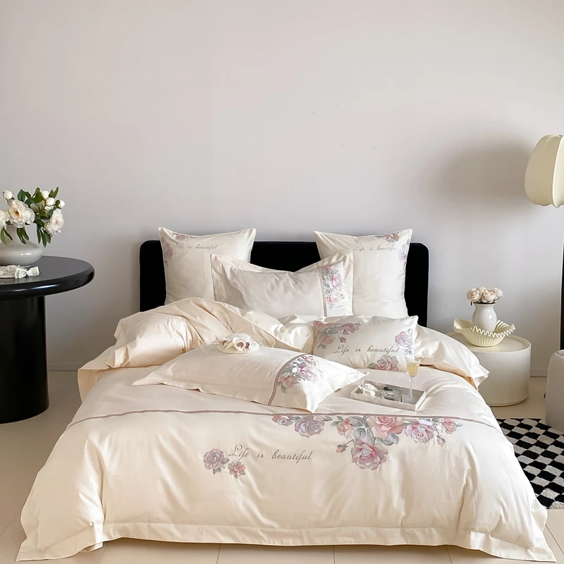 1000TC Egyptian Cotton Flowers Embroidery Jacquard Luxury Bedding Set Duvet Cover Flat/Fitted Bed Sheet Pillowcases 4Pcs $101.38