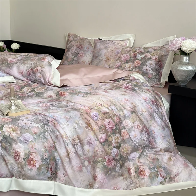 600TC Egyptian Cotton Vintage Rose Flowers Print Bedding Set Queen King Size Duvet Cover Flat/Fitted Sheet Pillowcases 4Pcs $80.10