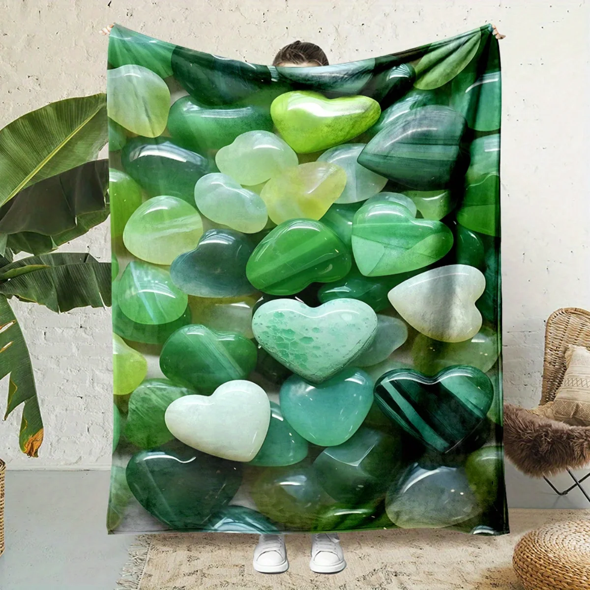 Heart-shaped stone print flannel blanket—soft and warm, perfect for home décor, bedding, camping, or travel, Christmas. $15.66