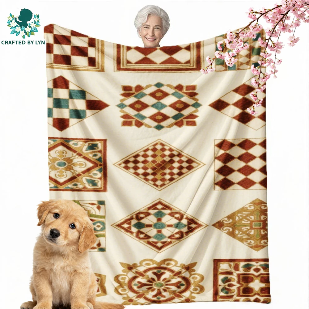 Amethyst and floral pattern flannel blanket—soft and warm, perfect for home décor, bedding, camping, or travel, Christmas. $15.66