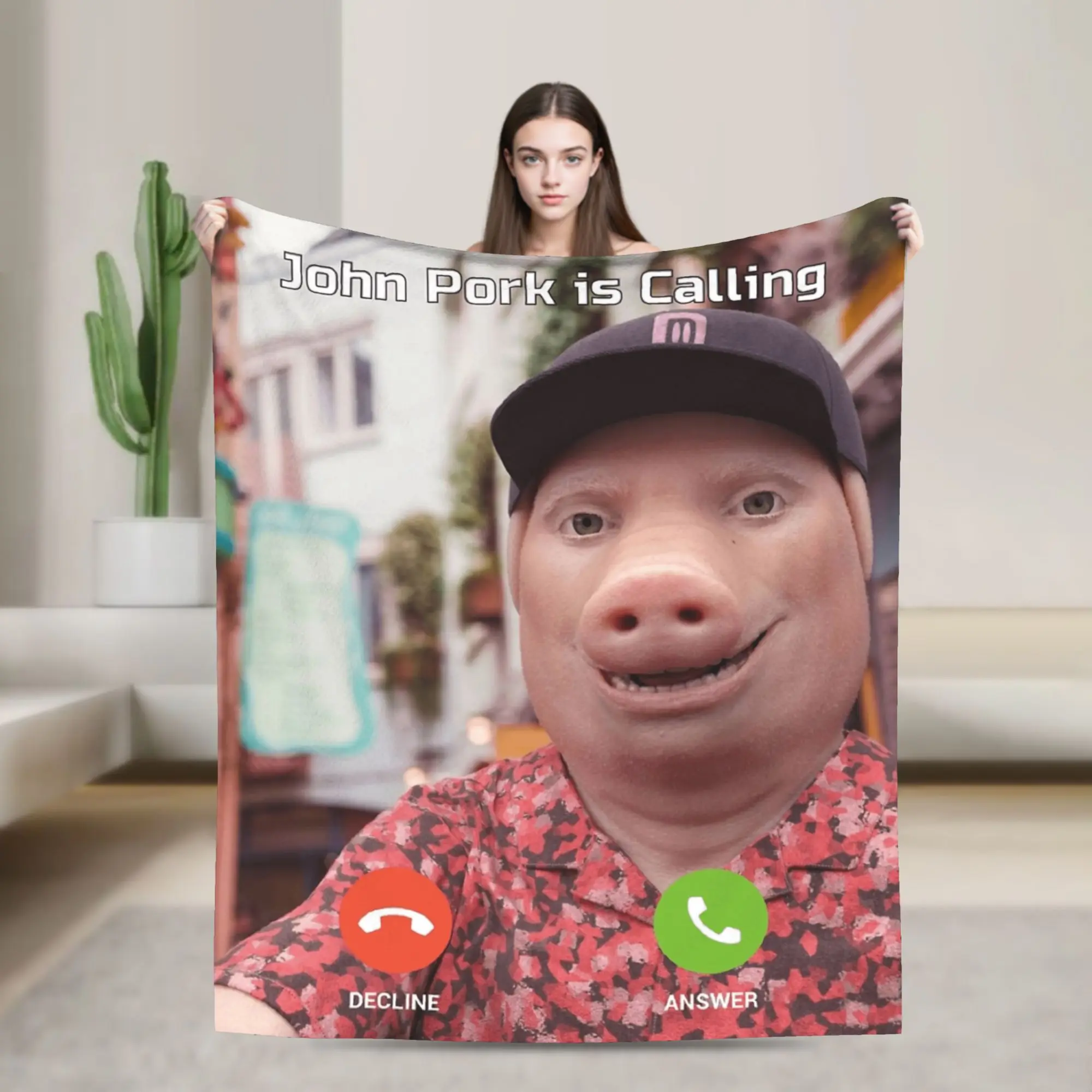 Funny Trending John Pork is Calling Blankets Super Soft Bedding Throws Winter Kids Couch Chair Sofa Bed Comfortable Bedspread $12.70