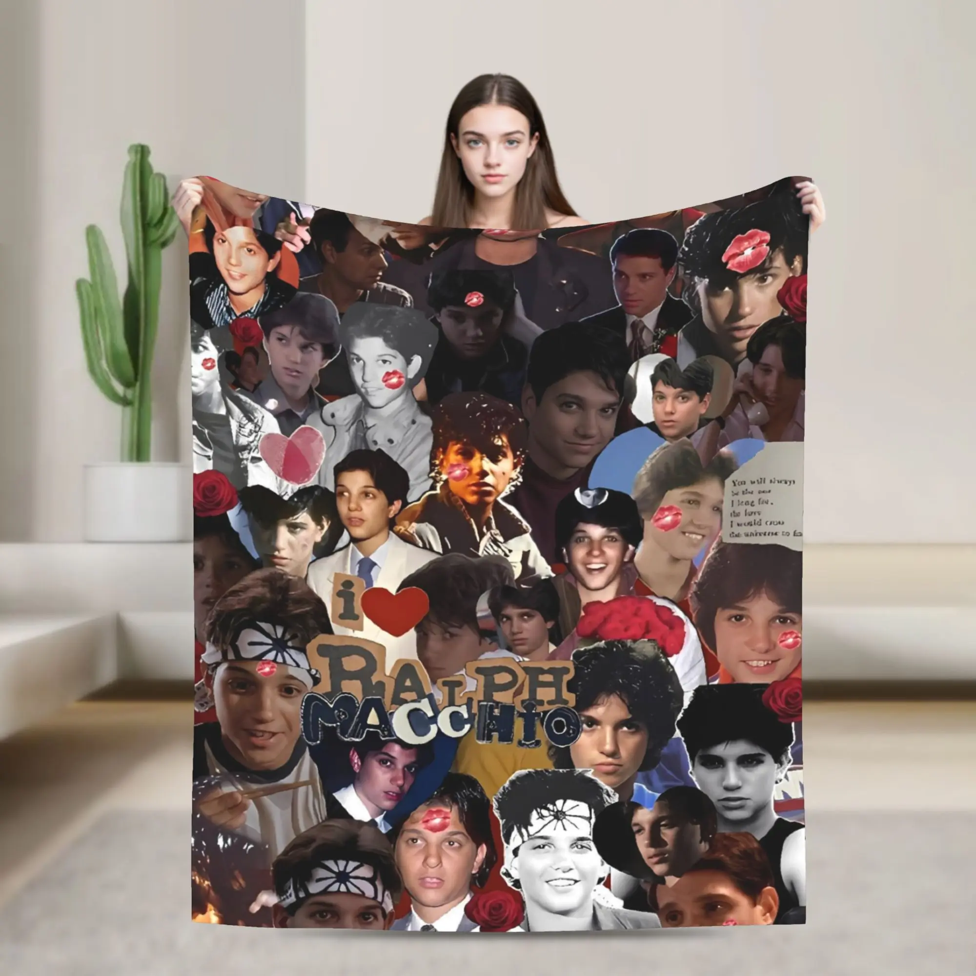 Warm Soft Blankets Camping 80s Ralph Macchio Limited Bedding Throws Flannel Bedspread For Couch Chair Sofa Bed Sofa Bed Cover $12.15