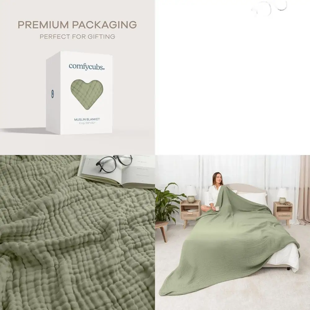 King Size 108x90 6-Layer Muslin Blanket for Adults - Soft, Breathable, Lightweight, Machine Washable, All-Season Bedding - Sage $58.95