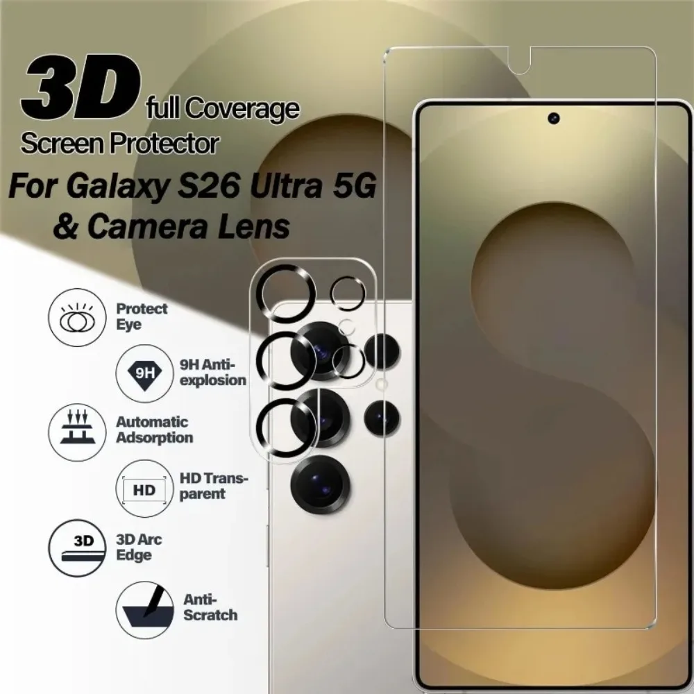 4IN1 HD (Screen+Camera Lens) Tempered Glass For Samsung S26 Ultra S25 Edge S24 S23 FE S22 Plus Fingerprint Unlock Protector Film $6.36
