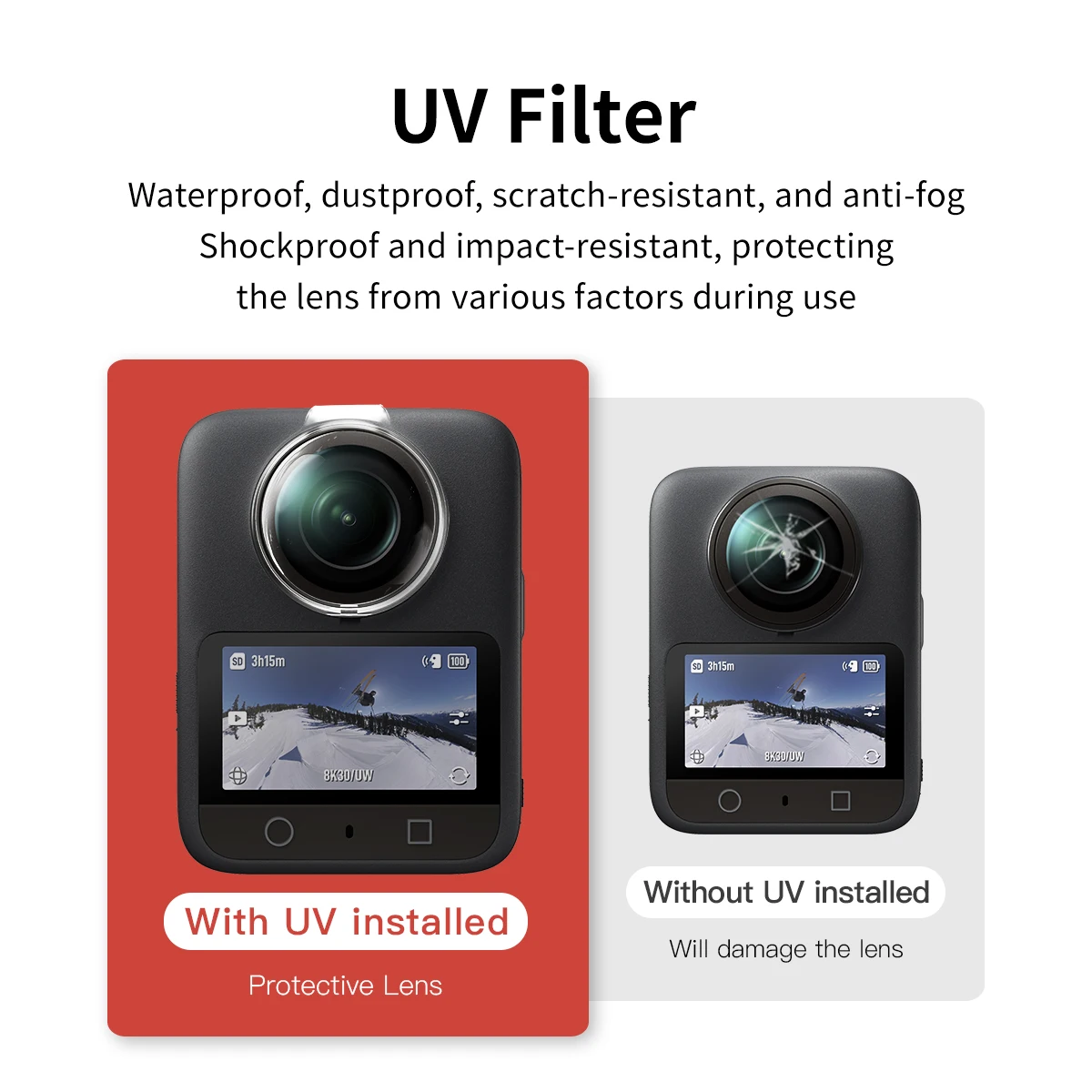 Mecoright Brand Is Suitable for Dji 360 Action Panoramic Camera Protective Lens, Dual-Lens Uv Filter, Waterproof, Dustproof, Scratch-Proof, Anti-Fog, Drop-Proof and Impact-Resistant, to Avoid Damage to the Lens during Use $13.70