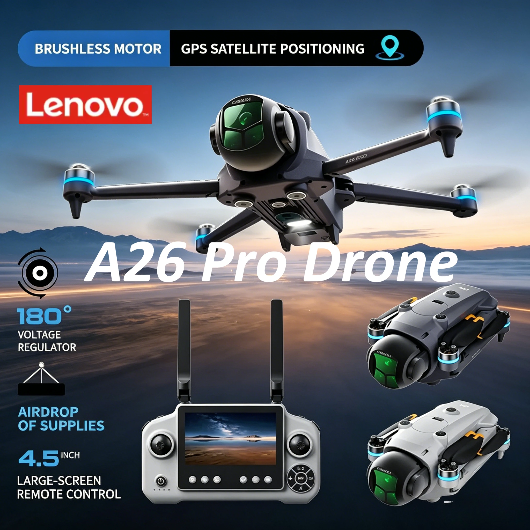 Lenovo Brushless A26 Pro 4K HD Aerial FPV Drone Triple Camera Obstacle Avoidance Foldable RC Quadcopter for Adults Kids $79.05