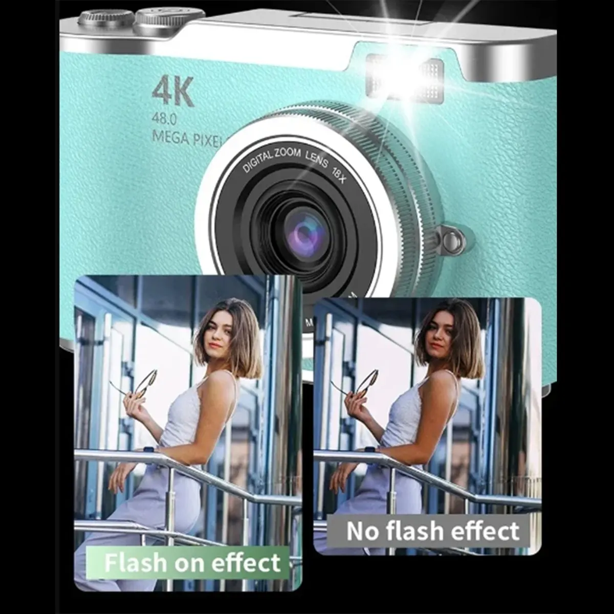 AS62 4K CCD 8X Digital Zoom Camera for Student 48MP Compact Digital Photography Camera 180 Flip Screen Selfile Camera Black $19.33