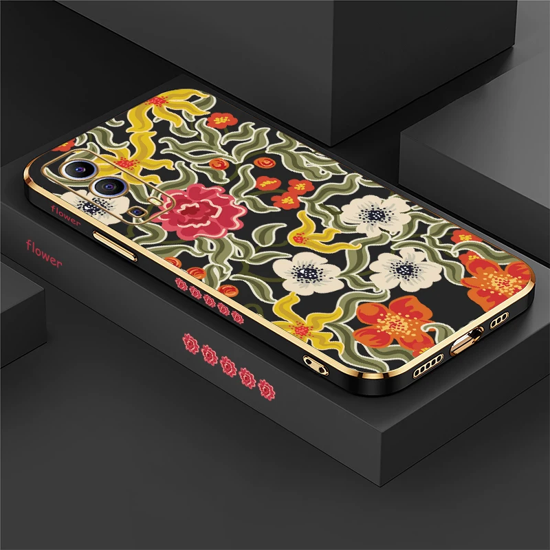 Luxury Camera Lens Protection Phone Case For Vivo IQOO Z7 Z9 Z9X U5X U1X Neo Z3 Vintage Flower Floral Pattern Shockproof Cover $4.85