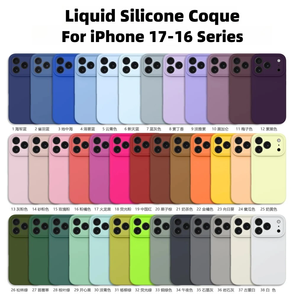 38 Color Official 1:1 Skin Feel Liquid Silicone Funda Case for IPhone 17 16 Pro Max Camera Protector Anti-drop Soft Coque Cover $5.33