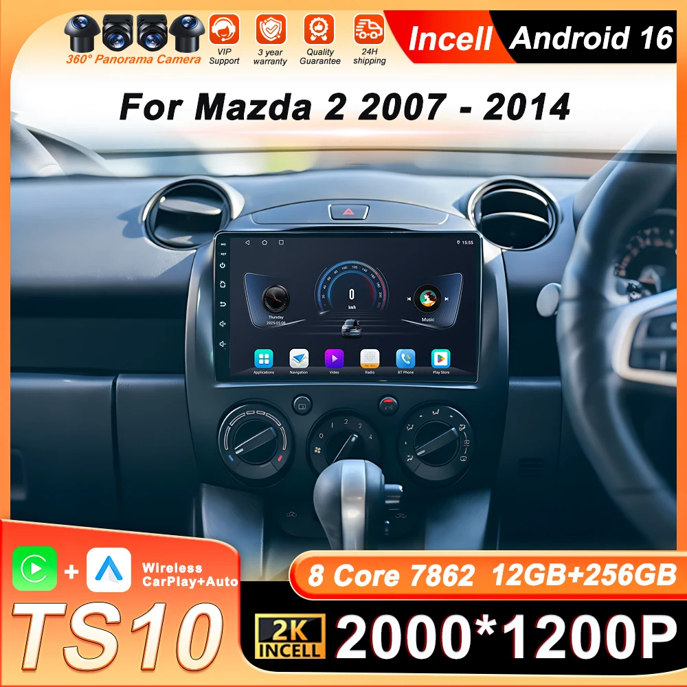 2K Screen Android 16 Car Radio Multimedia Player For Mazda 2 2007 2008 2009- 2014 Stereo Carplay Auto BT GPS Navigation FM DSP $84.61